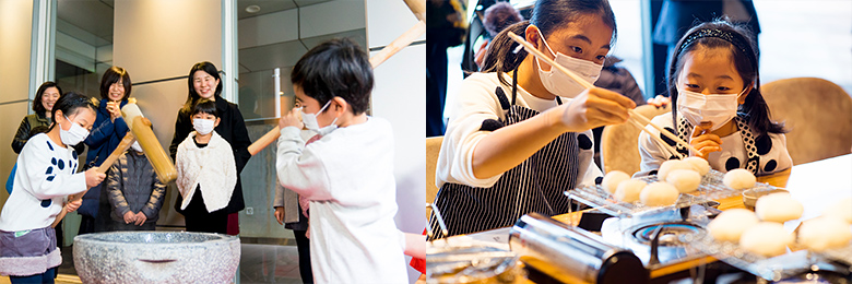 イベントには、小学生の子供をもつ家族8組が参加。今では少なくなった師走の伝統イベントである餅つきをはじめ、直火でお餅を焼く体験、お雑煮の調理などを行いました。力いっぱい餅をつく子供達に向け、熱い声援をおくるお母さんやお父さん達の姿を始め、火の加減が難しい餅の網焼きをとても真剣な眼差しで頑張る子供達の姿が印象的でした。