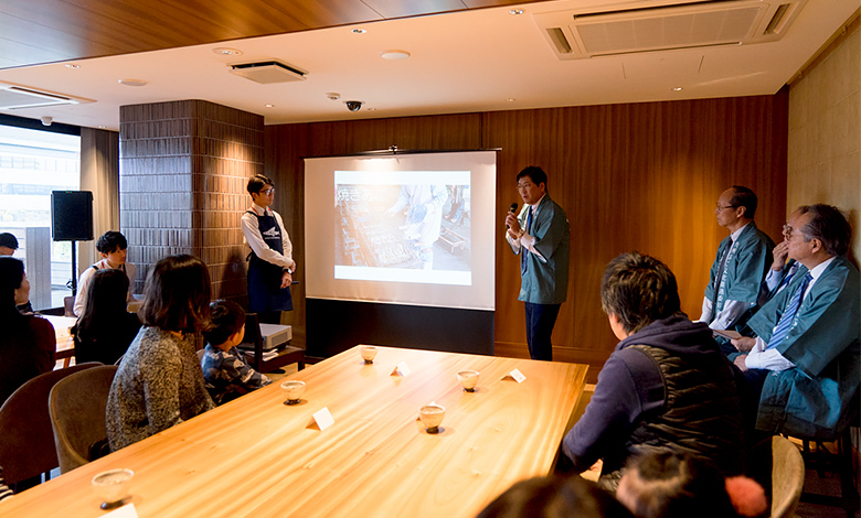 今回のメインイベントとなったあご雑煮教室の前には、「九州あご文化推進委員会」より、活動内容をPRするスライドトークも実施。平戸市の黒田市長、新上五島町の石田副町長、屋久島町の岩川副町長が、各地域の魅力と特産品を紹介し、それぞれの地域であごがどう親しまれているかという食文化についても触れました。