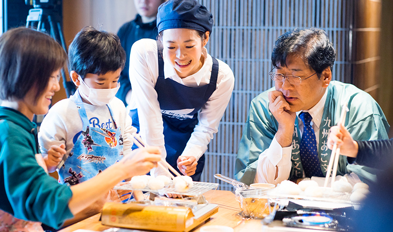 九州の伝統食材である“あご”を次世代の子供達に伝えることを目的としたこのイベント。お正月準備が始まるこれからの時期にぴったりの、あごを使った雑煮づくりが体験できる親子向けワークショップを行いました。親子で会話を交わしながらの料理教室で、終始微笑ましい光景が印象的だった当日の模様をお伝えします。