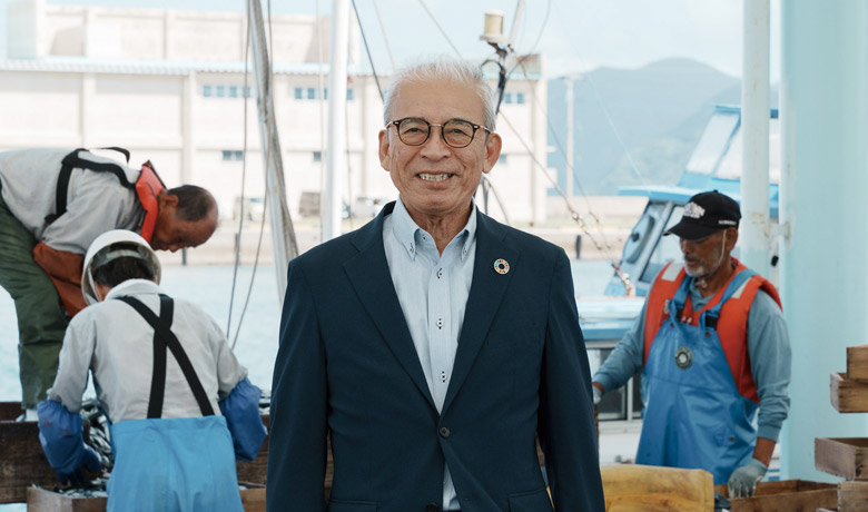海岸の清掃活動から国内初の漁網リサイクル施設まで。豊かな海を守るために奔走する舘浦漁協の鴨川組合長に話を聞いた。