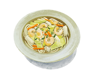 「平戸ちゃんこ部屋」という団体が主体となり、飲食店などを束ね開発したこの料理にはルールがあります。ルールは3つ、「スープはあごだしを含むこと」、「具材は平戸の海山の幸にこだわること」、「“想い”という大事な調味料も加えること」です。だしの素となる焼きあごは、手作業でじっくりと炭で焼いて冷まし、網に並べて天日干しをしてと、手間暇かけて作られます。焼きが甘いと生臭くなってしまったり、焦げすぎると苦味が出てしまったりと、熟練の技が必要です。また、あごのサイズによってだしの出方も変わるので、よりよいだしが出る新鮮なあごを使います。そんな焼きあごでとった上品なうま味とコクのあるあごだしスープに、ウチワエビやサザエなどの旬の海の幸、あごのすり身団子、平戸特産の川内かまぼこ、スープがよく染みるように細長く切った大根や人参、キャベツなどをたっぷりと入れます。さらに、平戸の美味しい食をもっと広げたいというパッションを隠し味に加えることで、この料理は完成するといわれています。