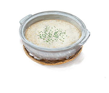- 水をはった土鍋に焼きあごを入れ、30分以上置いてだしをとる。